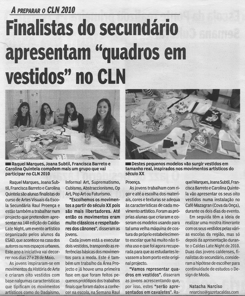 Gazeta das Caldas – Finalistas do Secundário participam no Caldas Late Night ESAD, 2010